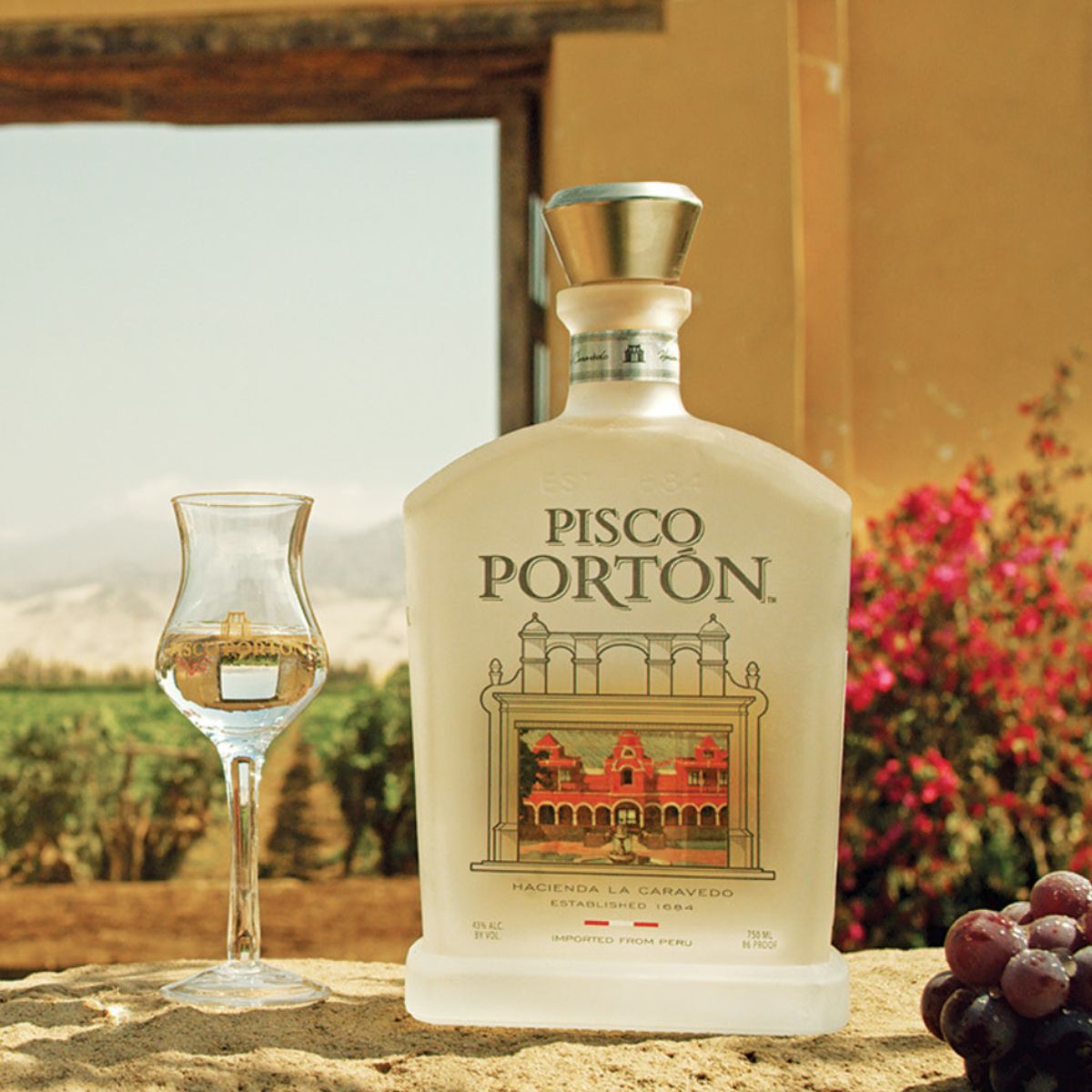 El Pisco Portón se elabora en la histórica Hacienda La Caravedo, ubicada en Ica, Perú. Es la destilería más antigua de América y cuna del pisco peruano.