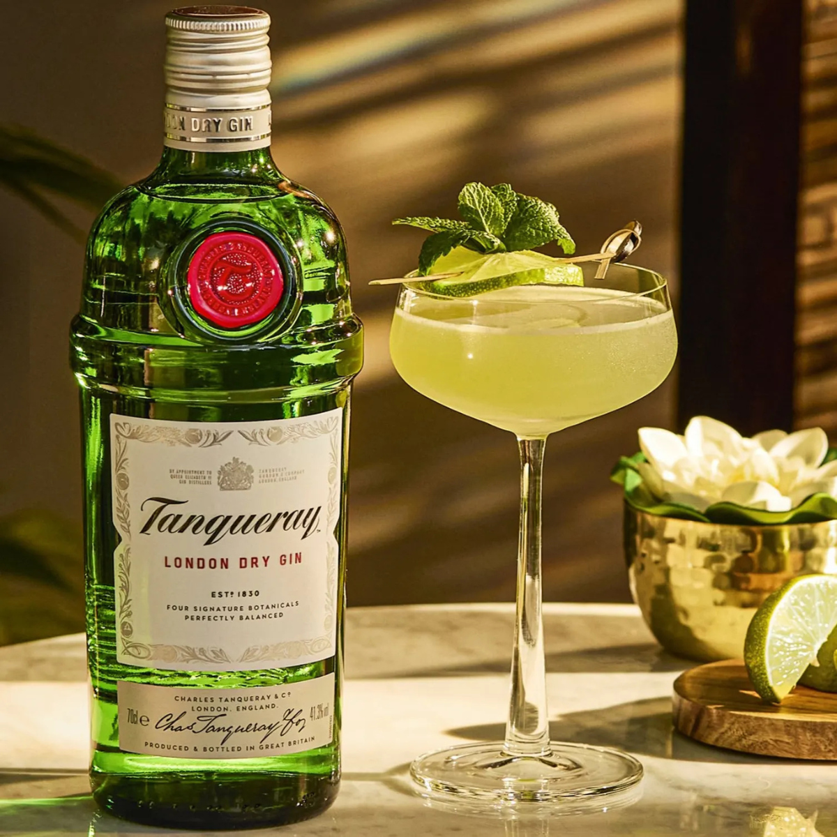 Es un gin premium de origen británico elaborado bajo la receta clásica creada en 1830 por Charles Tanqueray, caracterizada por su proceso de cuádruple destilación que garantiza pureza, intensidad y gran definición aromática. Su perfil se construye sobre una mezcla cuidadosamente equilibrada de botánicos donde destacan el enebro, cilantro, raíz de angélica y regaliz.